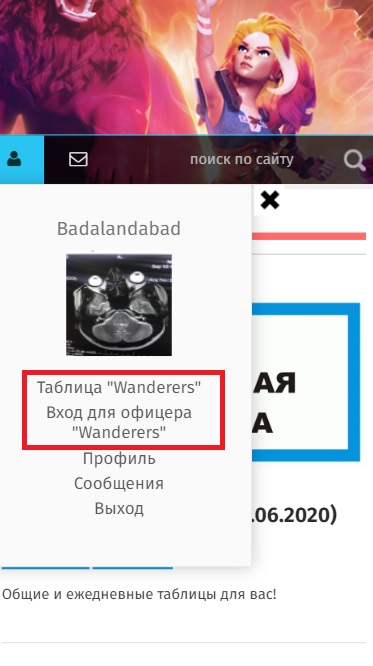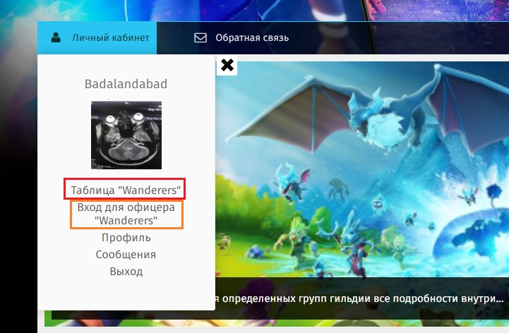 После регистрации аккаунта и после перевода в группу определенной гильдии, будет доступна таблица и вход для офицера в личном кабинете.