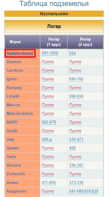 Внимание к участником гильдии, очень прощу вас, заполняйте только свою таблицу после удара босса, всего займет 1 минуту не больше, так легче офицерам ориентироваться на босса и кристалла. Мы команда и добиваемся в топ 100. Наше будущее зависит от вас!!!