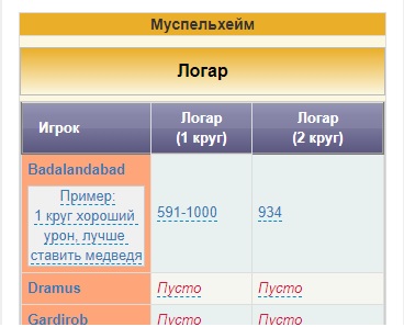 P.S. Ребята, прошу вас зарегистрируйте свой аккаунт со своим ником из игры на этом сайте, иначе у вас не будет доступ к таблицам урона.